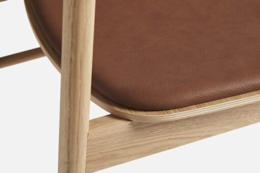 Medžiagiškumas: alyvuoto ąžuolo lukšto sėdynė su odos paminkštinimu ir ąžuolo masyvo kojelės