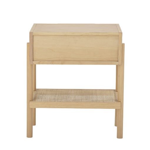 Staliukas su praktišku stalčiumi. Šoninis staliukas pagamintas iš pušies medienos, rotango ir faneros dangos derinio. Priekyje rasite keletą gražių nendrių detalių. Tai labai universalus stalas, puikiai tinkantis kaip naktinis staliukas.