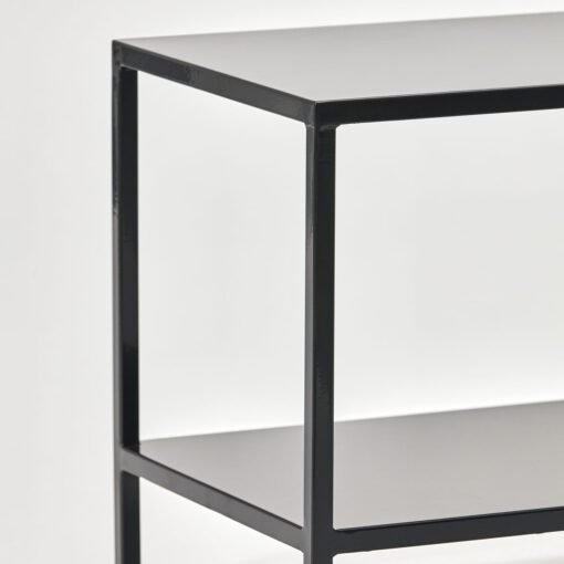 Stilingas šoninis staliukas pagamintas iš plieno su blizgia apdaila.