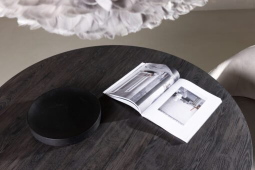 Skandinaviško stiliaus apvalus valgomasis stalas.