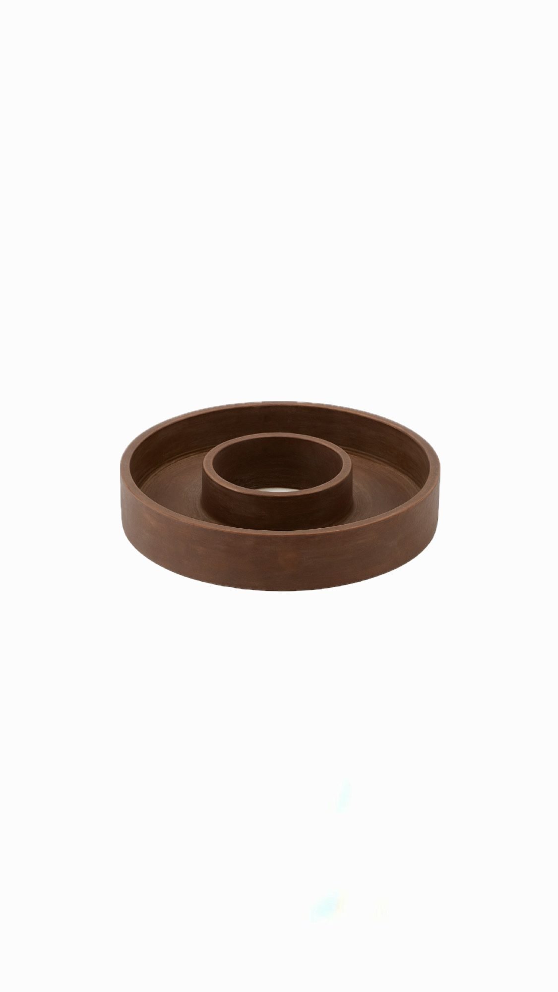 Modernios išvaizdos sendintas betoninis žiedas. Jį galima puošti eglių šakelėmis ar kitomis dekoracijomis. Galima naudoti kaip žvakidę. Šis žiedas gali pasitarnauti, kaip stalo dekoracija.