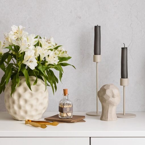 Rankomis liejamos pilkos spalvos žvakės, kurios stilingai ir elegantiškai supakuotos matinėje dėžutėje su aukso spalvos įspaudais. Dėžutėje rasite 6 žvakes. Vidutinis žvakės degimo laikas 42val.