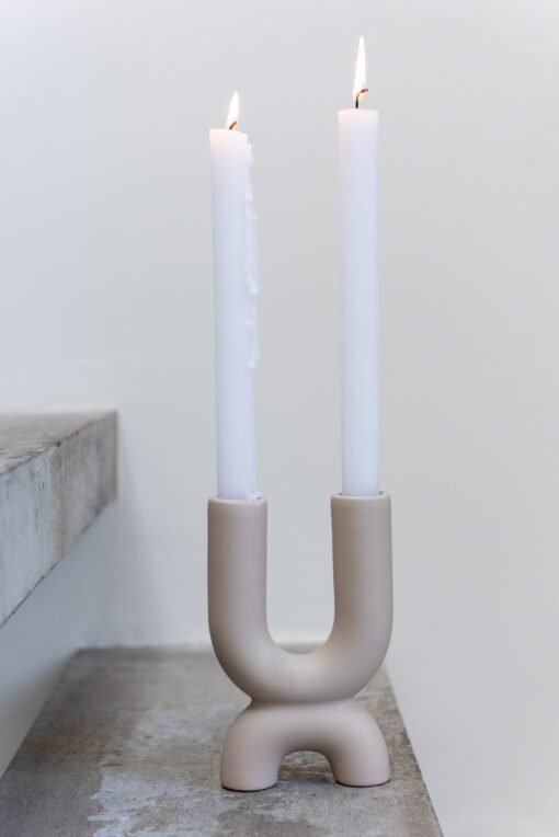 Rankų darbo žvakidė, minimalistinio modernaus dizaino.